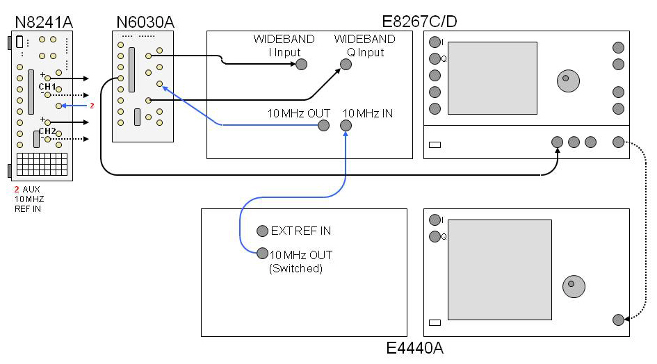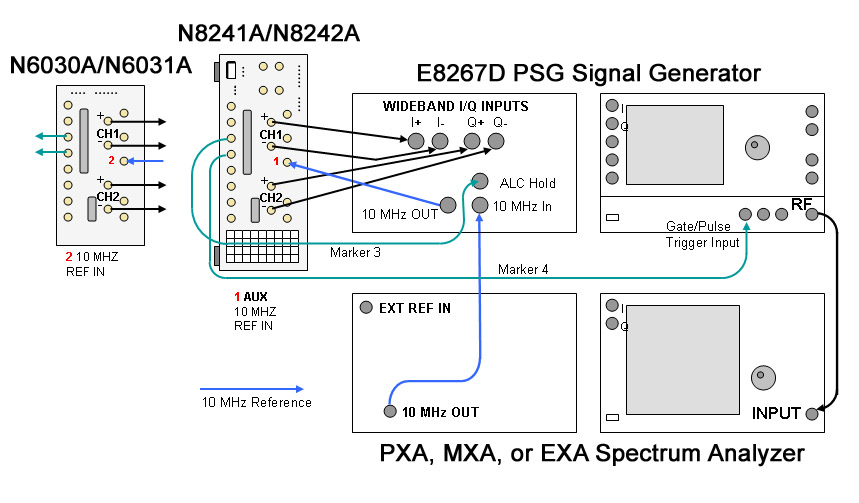 Wideband IQ: E8267D PSG Option 016 and N8241A or N6030A Arb with PXA